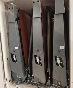 Koneessa on ilmakevennetyt paininkengät ensimmäisessä yksikössä, kelluvat paininkengät toisessa ja kolmannessa yksikössä. Koneen perässä on puhdistusharja D 150 mm sekä TURBO BLOWER kappaleen puhdistussuuttimet. Koneessa on tasainen imureillä varustettu syöttömatto mahdollistamaan 0,6 mm viilujen hionnan. Kone on vm 2019 ja myydään uuteen kotiin tekemään laadukkaita hiontoja edullisesti by Delmac.