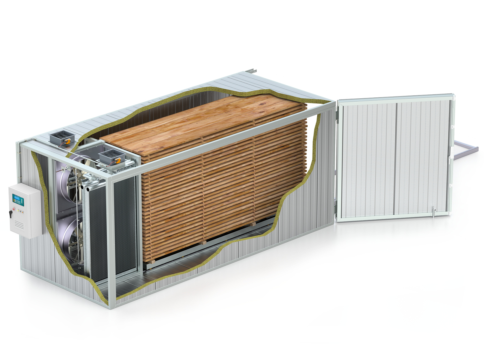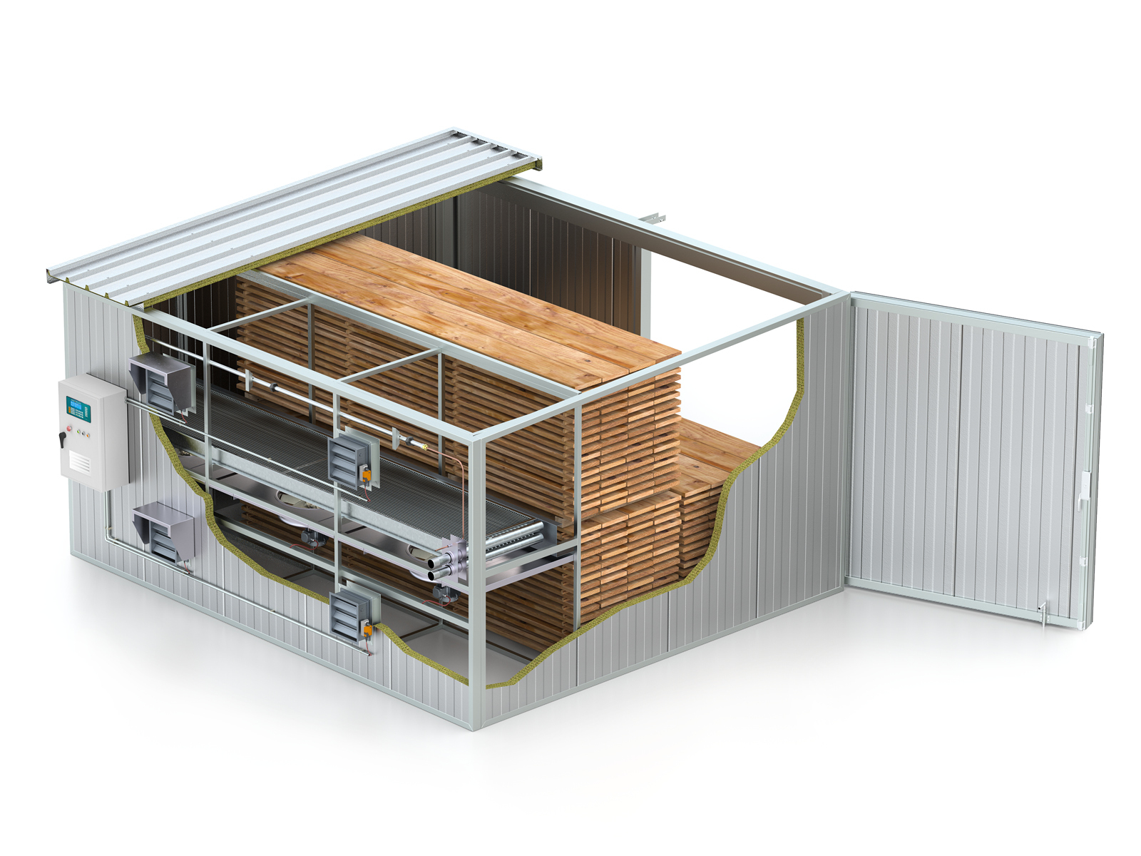 INCOPLAN SUPERPLAN kuivaamoita on käytössä sahatavaran, kuormalavojen, polttopuun, lamellien, trooppisten puulajien, kovapuun, pihkapuun ja muidenkin puumateriaalien kuivaukseen.